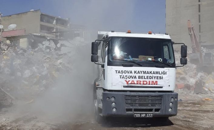 Taşova Belediye Başkanı Bayram Öztürk, “Belediyemiz araç ve ekiplerinin deprem bölgesinde dönüşümlü hizmetleri aralıksız sürüyor. Deprem bölgesine yakacak odun yüküyle intikal eden ekiplerimiz ve kamyonlarımız arama kurtarma faaliyetlerinin sonlandırıldığı bölgede enkaz kaldırma çalışmalarına katkı sağlıyor. Hızla enkaz kaldırma çalışmalarını tamamlayıp bölgedeki hasarın bir an önce giderilmesi için canla başla çalışıyoruz” ifadelerini kullandı.