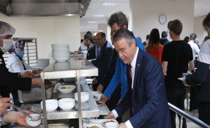 Milli Hakimiyet Yerleşkesi öğrenci yemekhanesinde gerçekleşen iftara Rektör Yardımcıları Prof. Dr. Recep Kürkçü, Prof. Dr. Halil Apaydın ve Genel Sekreter Duran Çuhadar da katıldı.