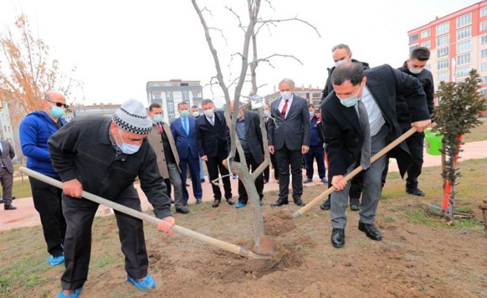 Amasya Valisi Mustafa Masatlı, Merzifon ilçesinde huzurevi sakinleriyle birlikte fidan dikti.