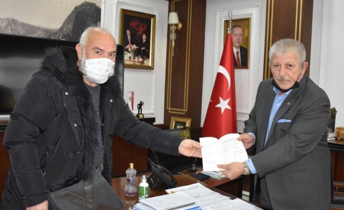 Amasyalı oyuncu ve şair Yavuz Çetin, ziyarette bulunduğu Amasya Belediye Başkanı Mehmet Sarı’ya yeni çıkan şiir kitabını hediye etti.