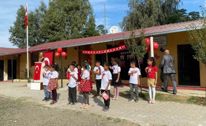 Adana’da köy okulunda okuyan çocuklar, 29 Ekim Cumhuriyet Bayramı ve Cumhuriyet’in 101. yılını coşkuyla kutladı.