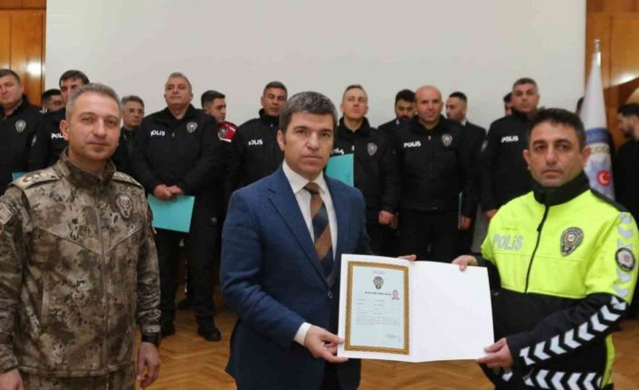 Amasya Valisi Önder Bakan, çeşitli suçlardan araması olan şahıslar ile yurda yasadışı yollardan giriş yapan yabancı uyruklu şahısların yakalanmasında üstün gayret gösteren 47 polise başarı belgesi verdi.