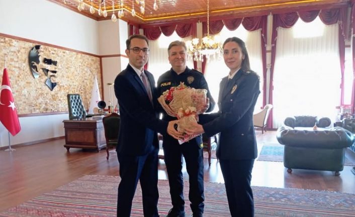 Türk Polis Teşkilatı’nın 180. kuruluş yıldönümü ve 10 Nisan Polis Haftası nedeniyle İlçe Emniyet Müdürü Ahmet Emrecan ve emniyet mensupları, Beypazarı Kaymakamı Vedat Yılmaz’ı makamında ziyaret etti.