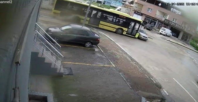 Edinilen bilgiye göre, güvenlik kamerasına yansıyan ilk kaza Osmangazi ilçesinde meydana geldi. Dört yol ağzında hız kesmeyip yollarına devam eden bir otobüs ile otomobil çarpıştı. Çarpışma sırasında yolcular büyük panik yaşadı. O anlar kameraya yansıdı.