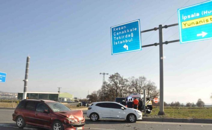 Alınan bilgiye göre, Keşan istikametinden İpsala istikametine giden S.U. yönetimindeki 06 SK 617 plakalı otomobil ile Beyendik Belediyesi istikametinden gelerek, Keşan’a dönüş yapmak için Beyendik Kavşağı’na giriş yapmak isteyen A.S. yönetimindeki 34 DHK 859 plakalı otomobil çarpıştı. Kazada, 06 SK 617 plakalı otomobilin sürücüsü S.U. ile otomobilde yolcu olarak bulunan A.K. ile 34 DHK 859 plakalı otomobilde bulunan M.B. yaralandı.