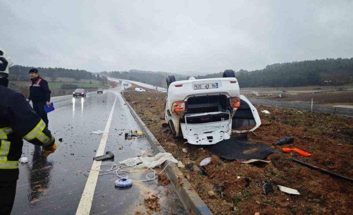 Bilecik’te seyir halinde kontrolden çıkan otomobil takla atarak durabilirken, meydana gelen trafik kazasında sürücüsü yaralandı.