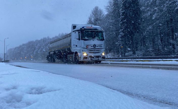 Türkiye’nin önemli geçiş noktalarından biri olan D-100 karayolunun Bolu Dağı geçişinde kar yağışı etkili oluyor. Yağış sebebiyle yeşil alanlarda kar kalınlığı 10 santimetreyi aştı.