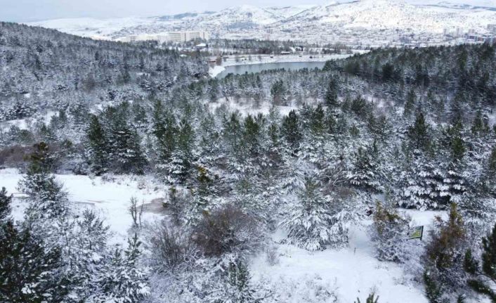 Türkiye’nin ilk milli parkı olan Yozgat Çamlığı, nisan ayında yağan karla birlikte adeta beyaz bir örtüye büründü. Bahar aylarında beklenmeyen kar yağışı, Çamlık’ta kartpostallık görüntüler oluştururken bu anlar dron kamerasıyla kaydedildi.