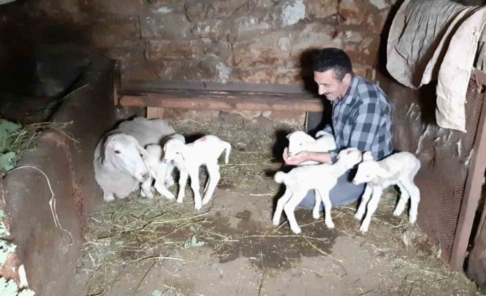 Bolu’nun Mudurnu ilçesinde hobi olarak küçükbaş hayvancılığı yapan bir vatandaşın, koyunu beşiz doğurdu. Tek seferde beşiz doğuran koyun görenleri hayrete düşürdü.