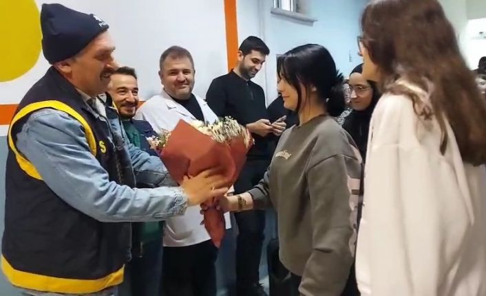 Samsun’da okulda kavga ihbarına giden polise, öğrenci ve öğretmenler tarafından sürpriz yapıldı. Öğrenciler polise çiçek takdim edip pasta kesip Polis Teşkilatı’nın 180. kuruluş yıldönümünü kutladılar.
