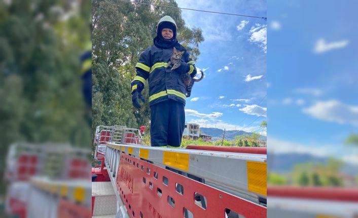 Hatay’da ağaçta mahsur kalan kedi itfaiye ekipleri tarafından kurtarıldı.