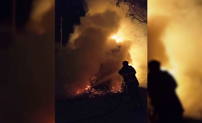 Iğdır’ın Akyumak köyünde çıkan yangında 300 balya ot yandı.