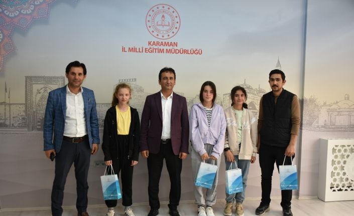 TÜBİTAK tarafından bu yıl 17’ncisi düzenlenen 2204-B Ortaokul Öğrencileri Araştırma Projeleri Yarışmasında Karaman’ı temsil ederek bölge 3’sü olan Mümine Hatun Ortaokulu öğrencileri İl Milli Eğitim Müdürü Mehmet Çalışkan’ı ziyaret etti.