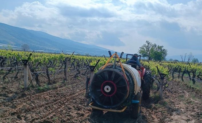 Tüm yurdu etkisi altına alan yağışlı havanın ardından gelen güneşli havayı fırsat bilen üzüm üreticileri, bağlarını ’İyi Tarım’ uygulamasının gerektirdiği tarım ilaçları ile İlçe Tarım ve Orman Müdürlüğü ziraat mühendislerinin kontrolünde ilaçlamaya başladı. Yağmur sonrası bağlara ilk üç gün içinde mutlaka ilaçlama yapılması gerektiğini belirten üzüm üreticisi Ahmet Tosun, "Her yağmur sonrası bağlarımızı mutlaka ilaçlama yapmak zorundayız. İlaçlama yapmazsak bağlarda prunus hastalığı olur ki ilerleyen günlerde engellemek zor olur" dedi.