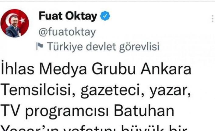 Cumhurbaşkanı Yardımcısı Fuat Oktay, hayatını kaybeden İhlas Medya Ankara Temsilcisi Batuhan Yaşar için taziye mesajı yayımladı.