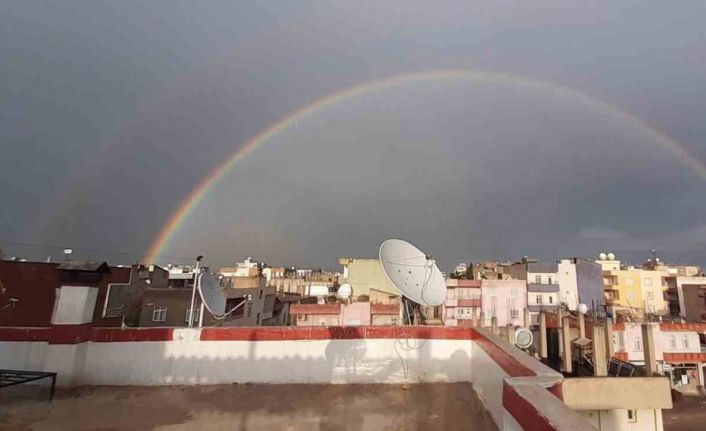 Şanlıurfa’nın Viranşehir ilçesinde yağmurdan sonra beliren gökkuşağı hayran bıraktı.