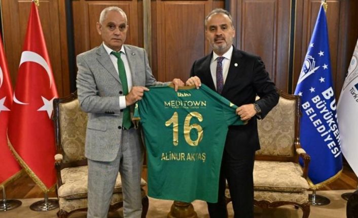 Bursaspor’dan yapılan açıklamada, “Başkanımız Recep Günay, İkinci Başkanımız Metin Genç, Yönetim Kurulu üyelerimiz; Sedat Topaloğlu, Ali Ekber Kartum, Ali Rıza San ve Savaş Sefa ile birlikte Bursa Büyükşehir Belediye Başkanımız Alinur Aktaş’ı makamında ziyaret etti. Ziyaretin sonunda Başkanımız Recep Günay, Aktaş’a isminin yazılı olduğu formamızı hediye etti” ifadeleri kullanıldı.