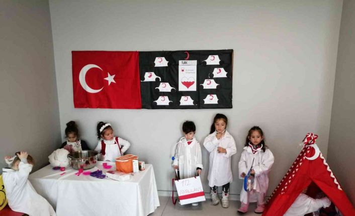 Doktor, hemşire, hasta, aşçı gibi rollere bürünen minikler, düzenlenen etkinlikle hem meslekleri tanıdı hem de Kızılay’ın öneminin farkına vardı.