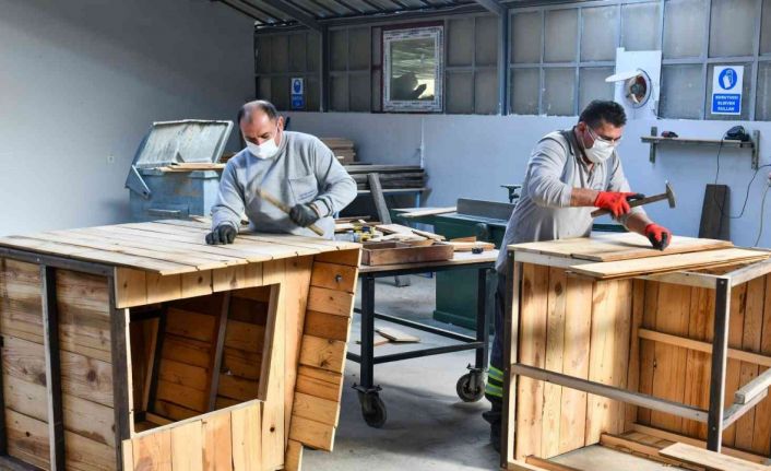 Geri dönüşüm çalışmaları çerçevesinde son olarak yenilenen AŞTİ’nin çatısından çıkan malzemeler değerlendirilerek, soğuk kış aylarında sokak hayvanlarının barınmaları için kulübeye dönüştürüldü.
