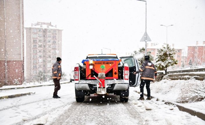 Meteoroloji Genel Müdürlüğü’nün yaptığı uyarıları dikkate alan Mamak Belediyesi, dün akşam saatlerinde aniden bastıran karın ardından harekete geçti.