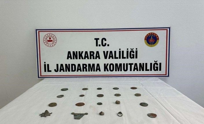 Ankara İl Jandarma Komutanlığınca Kültür ve Tabiat Varlıklarının Korunması ile Kaçakçılığın Önlenmesine yönelik sürdürülen çalışmalar neticesinde 21 Mart’ta Mamak ilçesinde, tarihi eserleri piyasaya sürerek haksız kazanç elde edeceği öğrenilen M.A. isimli kişinin üzerinde yapılan arama sonucunda; çeşitli dönemlere ait 15 sikke ve eski dönemlere ait 5 adet obje ele geçirildiği öğrenildi.