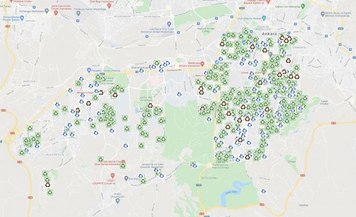 Çankaya Belediyesi, ilçe genelindeki tüm geri dönüşüm atık kumbaralarının yerini gösteren yeni haritasını yayınladı. Belediyenin web sayfasından erişebilen haritada 525 ayrı noktada bin 500’den fazla kumbara ve konteyner ile atıkların kaynağında ayrı toplanarak geri dönüşüme kazandırılması amaçlanıyor. Ambalaj Atıkları Kontrol Yönetmeliği kapsamında "Dönücem Ben Sana" sloganıyla pek çok projeyi hayata geçiren Çankaya Belediyesi, ambalaj atıkları sorununun kaynağında çözümlenmesi için çalışıyor. Haritada işaretlenen bölgelerdeki kumbaralarla Çankayalılar geri dönüşüme kaynağından başlayacak. Kaynağından toplama çalışmalarında konutlara öncelik veren Belediye, bin 500 olan konteyner sayısını aşamalı olarak 3 katına çıkaracak. Çankaya Belediyesi geri dönüşüm çalışmalarına kendi personelini de dahil ederek sürecin aktif yönetilmesini sağlıyor. Ayrıştırma tesislerine işleme üniteleri de kurulmasını sağlayan Belediye, ambalaj atıklarını granül haline getirerek fabrikalara sevkinden elde edilen geliri de yine Çankayalara hizmet amacıyla kullanacak.