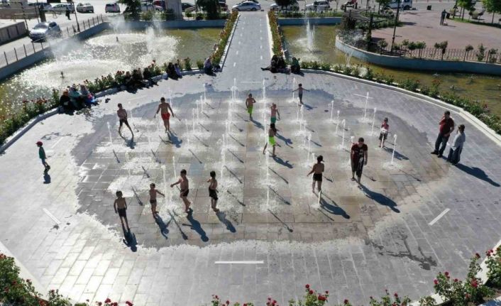 Termometrelerin Ankara’da 40 derecenin üzerini göstermesiyle sıcaktan bunalan çocuklar, ıslanma havuzuna akın etti.
