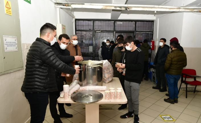 Sabahın ilk saatlerinde Şehit Nuri Pamir Anadolu Lisesi öğrencilerine çorbanın yanı sıra çay, simit ve poğaça ikramı da yapan Mamak Belediyesi, sosyal belediyeciliğin en güzel uygulamalarını Başkent’te sergilemeye devam ediyor.