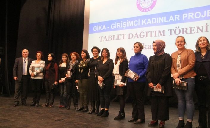 Konuşmaların ardından, Çankaya Belediyesi ve Başkent Üniversitesi’nin desteğiyle yürütülen ve kadınların el emeği ürünlerine elektronik ticaret sitesi kanalıyla ülke genelinde pazar sağlayabilmelerinin ve böylece iş gücüne katılımlarını da artırmanın amaçlandığı GİKA-Girişimci Kadınlar Projesi’ne katılan kadınlara tabletleri dağıtıldı.