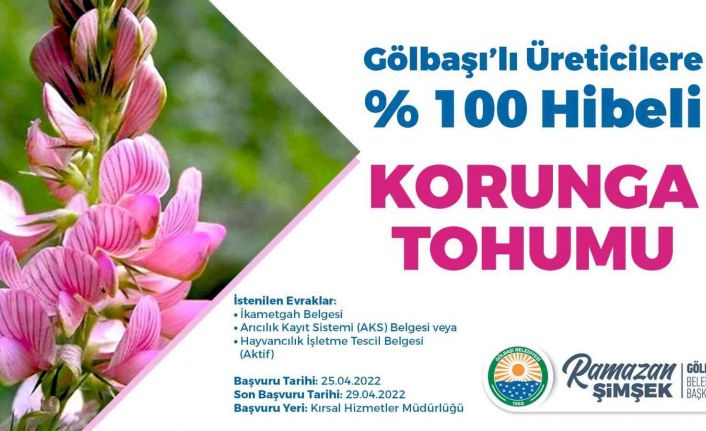 Gölbaşılı vatandaşların bal üretimini artırmak ve Türkiye’nin tarımsal ekonomisine katkıda bulunmalarını sağlamak amacıyla; çok yıllık, çiçeklenme dönemi uzun, bal kalitesini artıran, İç Anadolu iklimine uyumlu, kuraklığa ve özellikle soğuğa dayanıklı, kireçli, kuru ve kıraç topraklarda yetişebilen, büyükbaş ve küçükbaş hayvan beslemesinde yeşil ve kuru ot olarak değerlendirilen ve protein oranı hayvan beslemesi açısından yüksek olan, 1 kilo ekilen tohumdan en az 10 kilo tohum hasadı yapılabilen Korunga tohumunun dağıtımı istenilen belgeler karşılığında vatandaşla buluşacak.