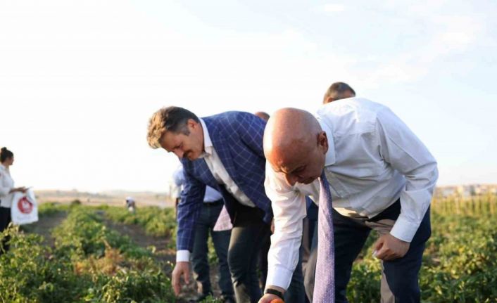 Ankara’nın Keçiören Belediye Başkanı Turgut Altınok ilçedeki Bağlum bölgesinde 20 dönümlük alana kurulan bostanda Keçiören mahalle muhtarlarını ağırlayarak onlarla birlikte mahsulleri hasat etti.