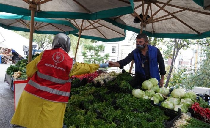Keçiören Belediyesi, belediyeye ait laboratuvarlarda uzman kimyagerler tarafından üretilen dezenfektanların üretim kapasitesini artırarak bu ürünleri vatandaşa dağıtmaya devam ediyor. Dezenfektan dağıtımını ilçenin birçok noktasında sürdüren ekipler aynı zamanda temizlik, maske ve mesafe (TMM) kurallarına uyulması yönünde uyarılarda da bulunuyor.