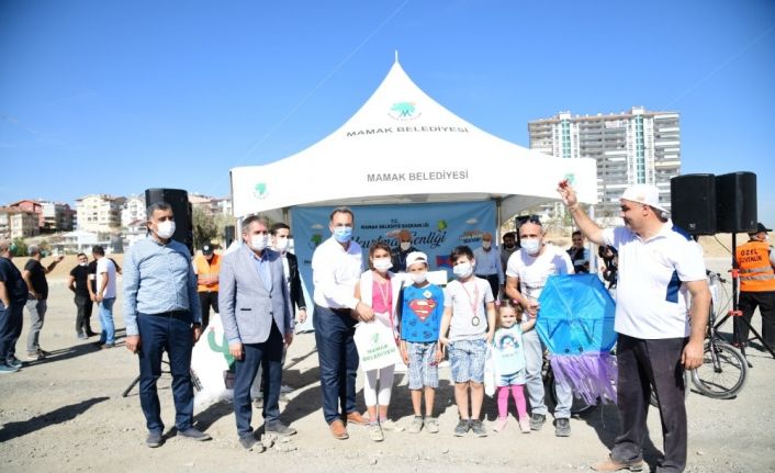 Mamak Belediyesinin düzenlediği ödüllü uçurtma şenliğinde gökyüzü çocukların uçurtmalarıyla renklendi.