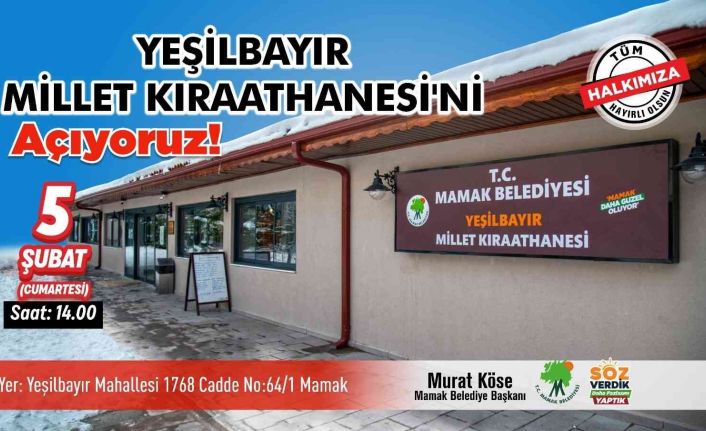 Yeşilbayır Millet Kıraathanesi Mamaklılara hizmet vermek için gün sayıyor. 5 Şubat Cumartesi günü saat 14.00’de açılışı gerçekleşecek olan Yeşilbayır Millet Kıraathanesinin mahalle sakinlerinin uğrak noktası olması bekleniyor.