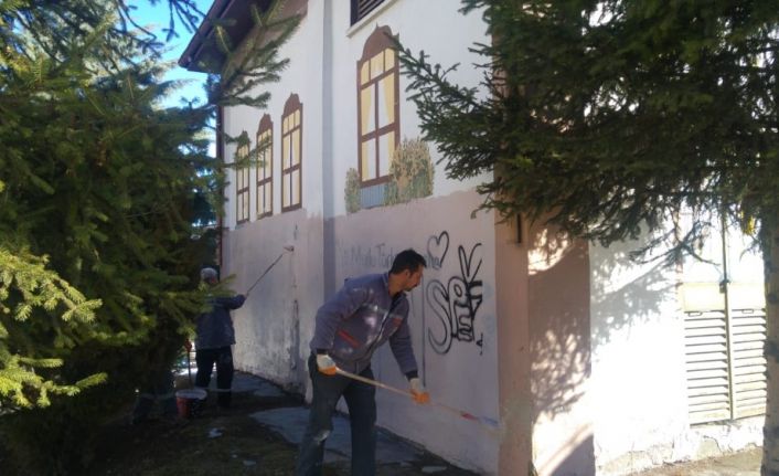Pursaklar Belediyesi duvar yazılarını temizliyor