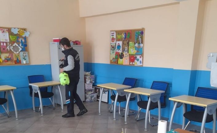Çevre Koruma ve Kontrol Müdürlüğünce gerçekleştirilen dezenfekte çalışmalarında; derslikler, giriş kapıları, lavabolar, kapı kolları, koridorlar, idari binalar, sosyal alanlar, kafeteryalar, salonlar, eğitim materyalleri ve oyun alanları özenle dezenfekte edilerek steril hale getirildi.