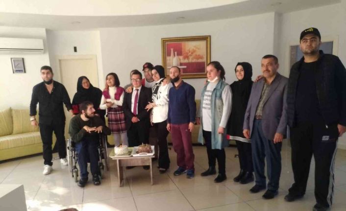 Engelliler Sosyal Tesisinde kendisi için hazırlanan doğum günü pastasını görünce şaşıran Ömer’in mutluluğu gözlerinden okundu.