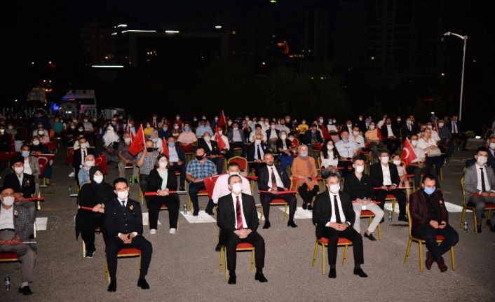 Kutlama alanı sosyal mesafe kurallarına göre düzenlenirken, alana girişlerde el dezenfektanı kullanıldı ve ateş ölçümü yapıldı. Sosyal mesafe kurallarına göre birer metre aralıkla yerleştirilen sandalyelere belediye tarafından şehit aileleri ve gaziler için Türk Bayrağı bırakıldı. Belediye binası önündeki anma töreni, şehitler için saygı duruşu ve İstiklal Marşı’nın okunmasıyla başladı. Kur’an-ı Kerim okunarak 15 Temmuz şehitleri için dua edildi. Darbe girişimine karşı kahramanlık destanının yazıldığı günde sahneye çıkan Talha Bora Öge ve Hayati İnanç’ın konferanslarının ardından Ahmet Şafak müzik dinletisi ile yüreklere dokundu.