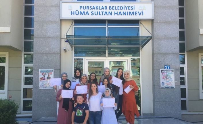 Pursaklar Belediyesi Hüma Sultan Hanım Evi’nde pastacılık ve işaret dili kurslarına katılan kadınlar sertifikalarını aldı.