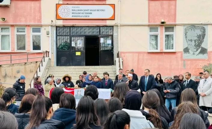 Ankara’nın Beypazarı ilçesinde geçirdiği trafik kazası sonucu hayatını kaybeden Şehit Hulki Beydili Mesleki ve Teknik Anadolu Lisesi 10. sınıf öğrencisi Elif Nisa Karahan için öğrenim gördüğü okulda tören düzenlendi. Düzenlenen törene Elif Nisa’nın ailesi, arkadaşları ve öğretmenlerinin yanı sıra ilçe yöneticileri de katıldı. Törende duygu dolu anlar yaşanırken, henüz 15 yaşındaki Elif Nisa’nın arkadaşları gözyaşlarını tutamadı.