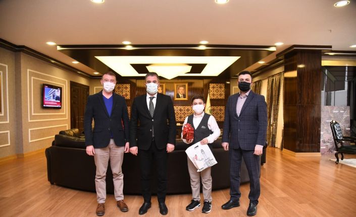 Türkiye Diyanet Vakfı’nın ülke çapında gerçekleştirdiği 10-13 yaş arası Kur’an-ı Kerim’i güzel okuma yarışmasında Pursaklar Medine İmam Hatip Ortaokulu öğrencisi Muhammed Bilal Çakmak, Türkiye üçüncüsü olarak büyük bir başarıya imza attı. Bu büyük sevince ortak olan Belediye Başkanı Ertuğrul Çetin, Muhammed Bilal Çakmak’ı makamında ağırlayarak başarılarından dolayı tebrik edip hediye verdi.