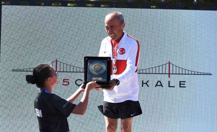 73 yaşındaki Milli sporcu Ali Bıdı, 1915 Çanakkale Köprüsü Gelibolu Triatlonu’nda 65+ yaş kategorisinde kazandığı kupa ve madalyasını şehitlere adadı.