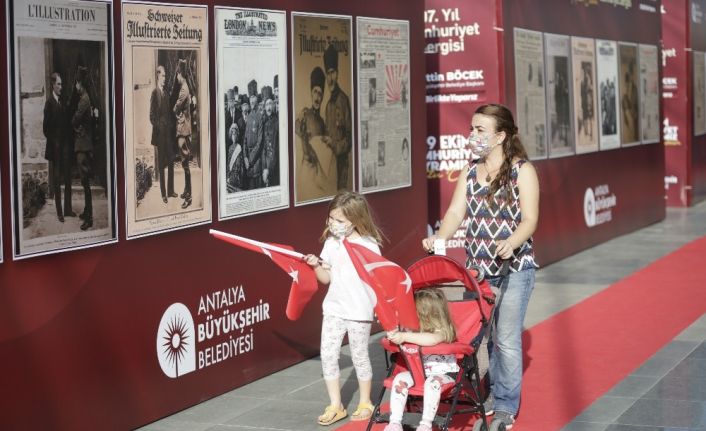 Antalya Büyükşehir Belediyesi, Cumhuriyetin 97. Yılı kutlamaları kapsamında Cumhuriyet Meydanı’nda da etkinlik alanı oluşturdu. Kurtuluş Savaşı’ndan Cumhuriyetin ilanına kadar olan süreci anlatan gazete manşetlerinden oluşan sergi büyük ilgi görüyor. Alanı ziyaret edenler arttırılmış gerçeklik teknoloji stantlarında Atatürk’ün 3 boyutlu görseli ile fotoğraf çektirebilme şansına da sahip oluyor.