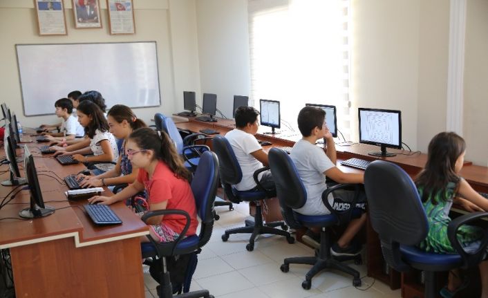 Antalya Büyükşehir Belediyesi Atatürk Kültür Bilgi Eğitim Merkezleri AKBEM çocuklar yaz tatilini verimli bir şekilde değerlendiriyor. AKBEM bünyesinde yoğun ilgi gören Kodlama kursuna katılan çocuklar analitik düşünme ve problem çözme becerilerini geliştiriyor.