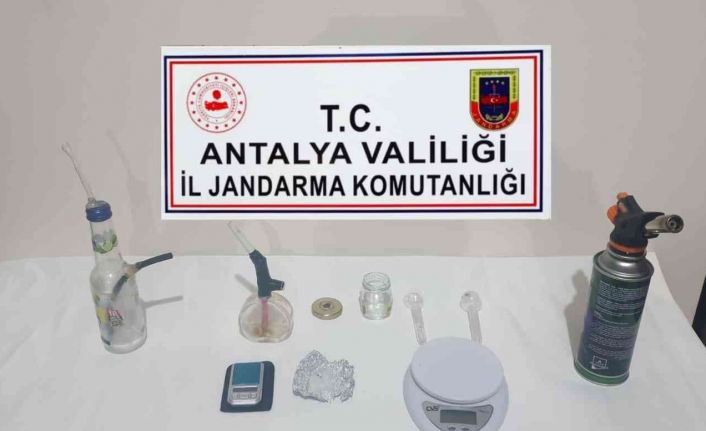 Antalya İl Jandarma Komutanlığı Asayiş Şube Müdürlüğü JASAT Timleri ve Akseki İlçe Jandarma Komutanlığı ekiplerince M.Ç. isimli şahsın Akseki İlçesinde ikamet ettiği evde ve aracında yapılan aramada; 4 gram metamfetamin uyuşturucu maddesi, 2 adet uyuşturucu satışında kullanılan hassas terazi, 4 adet uyuşturucu madde kullanma aparatı payp ele geçirildi.