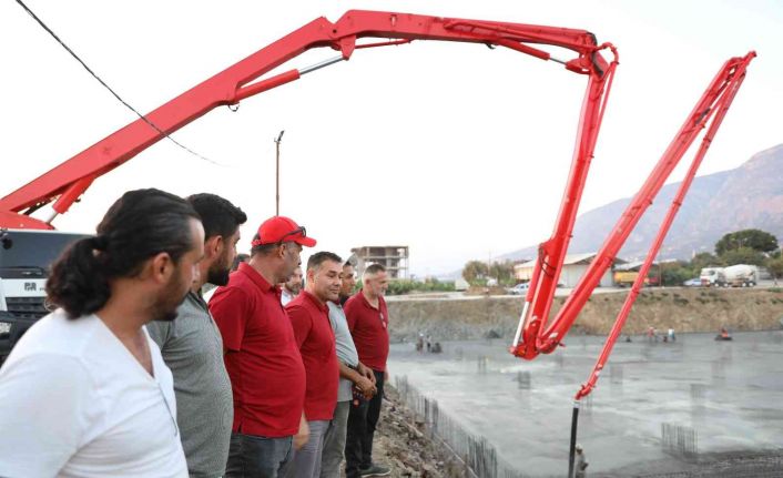 Alanya Belediye Başkanı Adem Murat Yücel’in Mahmutlar Mahallesi’nde Dışişleri Bakanı Mevlüt Çavuşoğlu, Alanya Kaymakamı Fatih Ürkmezer, Antalya Milletvekilleri Mustafa Köse, Kemal Çelik, Tuba Vural Çokal, AK Parti Antalya İl Başkanı İbrahim Ethem Taş, MHP MYK Üyesi Hüseyin Yıldız, ilçe başkanları, muhtarlar ve vatandaşların katılımıyla temelini attığı Mahmutlar Kültür Merkezi ve Etüt Merkezi hızla yükseliyor. 9 Eylül Cuma günü atılan temelin ardından çalışmaları yakından incelemeye devam eden Başkan Yücel, inşaatla ilgili bilgiler verdi. Çalışmaların 5 beton pompası ve 75 mikser ile sürdüğünü belirten Başkan Yücel, “Çalışmalarımızı aralıksız sürdürerek en kısa zamanda bu dev projeyi vatandaşlarımızın kullanımına açmış olacağız ” dedi.