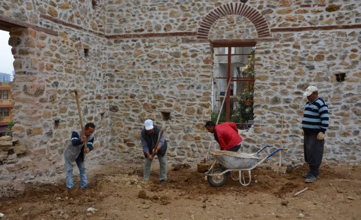 Antalya Büyükşehir Belediyesi, Alanya’nın en önemli tarihi yapılarından biri olan Gülevşen Camii’nin restorasyon çalışmaları kapsamında binanın duvarları aslına uygun olarak inşa edildi.