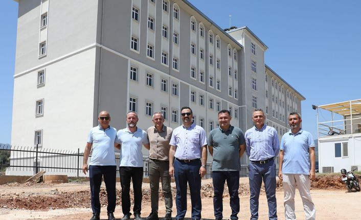 ALKÜ Rektörü Prof. Dr. Ekrem Kalan, Alanya Belediye Başkanı Adem Murat Yücel, Antalya Gençlik ve Spor İl Müdürü Yavuz Gürhan ve beraberindeki heyet ALKÜ Kestel Yerleşkesinde çevre ve altyapı düzenlemeleri ile son aşamaya gelen ve 2022-2023 öğretim yılında hizmete girecek olan 2 bin kişilik Kredi Yurtlar Kurumuna (KYK) ait yurt inşaatında incelemelerde bulundu.