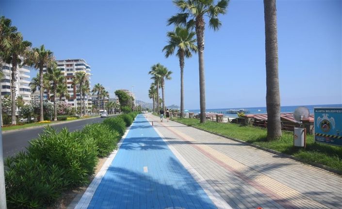 Alanya Belediyesi’nin yaklaşık 30 km’lik kesintisiz bisiklet yolu projesi kapsamında Kestel/ Mahmutlar/Kargıcak etabında boyama aşamasına geçildi. Alanya Belediyesi ekipleri, çalışmalarını Mahmutlar-Kargıcak arasında sürdürüyor. Yürüyüş yolundan ayırmak için bisiklet yolu mavi renge boyanıyor.