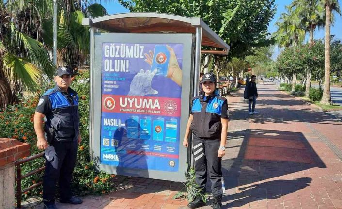 İçişleri Bakanlığı ve Emniyet Genel Müdürlüğü tarafından uyuşturucuyla mücadele ve kadınların ve çocukların maruz kaldığı şiddet, taciz gibi kötü eylemleri önleme amacıyla geliştirilen UYUMA ve KADES resmi uygulamalarının tanıtımına katkı sağlamak ve kullanımını yaygınlaştırmak amacıyla Alanya’nın ana caddelerinde bulunan 40 ayrı otobüs duraklarına afiş asımı gerçekleştirildi.